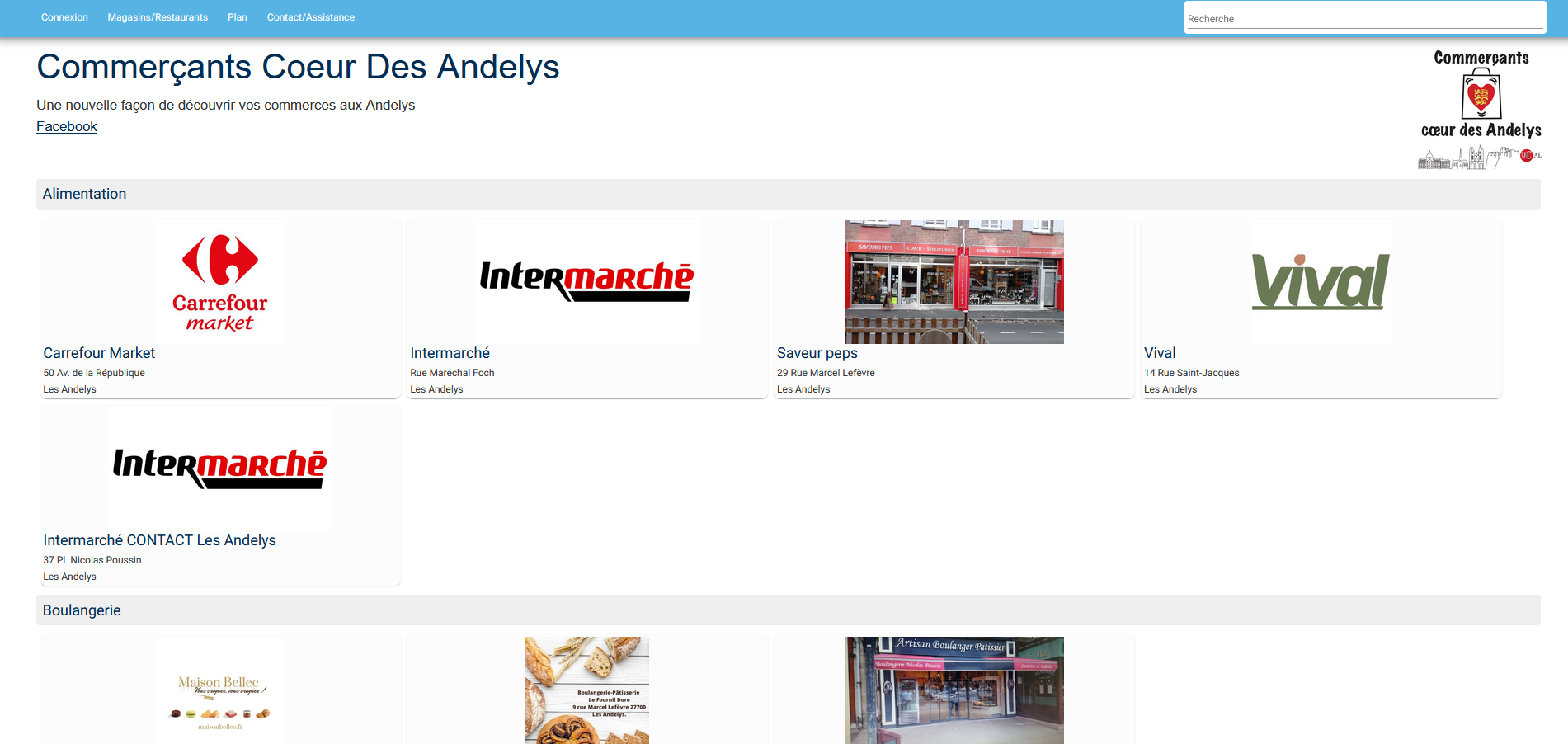 La recherche permet de retrouver les magasins par leur mots clés et leurs activités