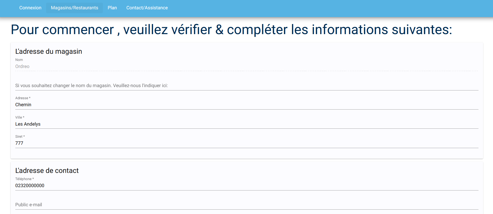 - Complétion de la fiche du renseignement du magasin.